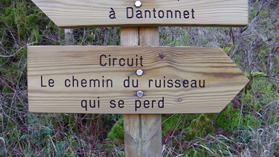 Après le passage sous la D 653 le chemin longe la Sagne dans un paysage fantastique: falaises, squelettes de buis couverts de mousse filendreuses, moulin et lavoir. Ce ruisseau est surpenant et n'est pas appelé le ruisseau qui se perd pour rien : depuis Sabadel il coule bien, puis plus d'eau ! Il se perd, mais en suivant le chemin on ne voit pas sa perte, on le constate plus loin, bien sec le jour de notre passage. Il ressort un peu avant le moulin de Font-Faurès (beau bief bien bâti mais laissé vide) et alimebnte un beau lavoir plus bas. A ce lavoir la bouble quitte la Sagne pour gagner en hauteur petit à petit. Au nive d'Al Gruat prenez le temps de lire les panneaux et ... de carresser les chiens s'il viennent vous voir. Cette boucle s'achève en repassant sous la D 653. Au niveau de la croix repartir à droite permet de regagner le chemin du départ. Si on part à gauche puis à droite malgré la croix jaune on emprunte un chemin non balisé mais propre qui monte derrière Sabadel pour arriver au niveau de l'église. Après un passage non loin du lavoir du bas du village, un chemin longe la sagne, arrive au niveau de la ruine sous l'ancienne école, il suffit de rmponter sur la gauche pour retrouver le parking face à l'ancienne école.Bonne rando, lotois