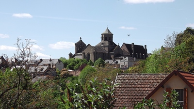 Aubazines, l'abbatiale vue du chemin des moines ,au retour