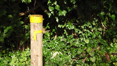 Partir sur la gauche vers la grosse tour carrée qui est un ancien haut-fourneau, prendre la route qui monte à gauche et au niveau du virage prendre à droite le chemin en surplomb (chenil et bois de chauffage). Le balisage classique suffit là aussi. Entre le km 4 et le km 5 ne pas manquer le départ de la variante (V jaune au-dessus du trait jaune) sinon on peut pousser jusqh'à "la-Sauvetat-de-Blanqufort", ce qui rajoute environ 1.5 km à la boucle.Histoire: