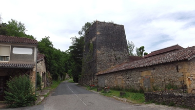 À l'entrée d'une ruelle qui mène au château, une réclame publicitaire vante un journal aux couleurs bleues. À côté, une maison de la fin du XVe serait l'ancien hôpital fondé en 1 535. De là, on aperçoit le haut-fourneau. Il a été construit en 1 837 sur la forge qui date de 1 676. Il est transformé en 1923 en fabrique de limonades. Sur la place des Marronniers, à côté de la mairie et de l'école, on découvre le monument aux morts de la guerre 14-18, dit la France au drapeau, de 1922. Le château de Blanquefort date du XIIIe. Il a connu plusieurs propriétaires dont Béranger de Roquefeuil qui s'y est installé avant d'aller à Bonaguil. En 1880, il a accueilli l'école des garçons et la mairie. C'est maintenant une propriété privée. Sur les hauteurs, l'église Notre-Dame de Millac marque l'emplacement de l'ancien village.