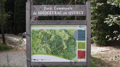 Boucle du Cayla : de la place (foirail) se diriger vers l'arrière de l'église, face à la petite place au fond de laquelle se trouve l'O T de Sousceyrac , prendre la rue qui descend vers le lavoir, au lavoir prendre le chemin de droite et suivre le balisage jaune ou les plaques vertes avec CAYLA .