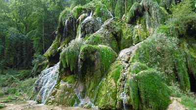 Départ de La Peyrouse, à l'entrée de Baume les Messieurs (petit parking avant le panneau, face à l'église). Cette boucle monte sur le plateau de droite, redescend dans la vallée par l"échelle" de Sermu, remonte la vallée jusqu'à la grotte, remonte sur le plateau par l'échelle de Crançon. Sur le plateau passage à la croix de Suchot pour sa vue sur l'abbaye et au parking suivant prendre le sentier qui descend derrière l'abbaye. Arrivé à la route, (D 70), la remonter jusqu'à l'épingle à cheveux pour prendre le sentier à gauche (portillon au départ et portillon à l'arrivée qu'il faut bien refermer : moutons) qui passe sous la baume pour revenir au-dessus de l'église de La Peyrouse.