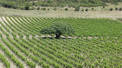 Opoul, mas La Val Oriola, arbres au milieu des vignes