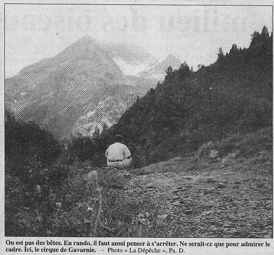 Les lieux communs. « En vrac. Ne pas partir trop tard. Connaître son corps et ses 1imites. En montagne, on monte mais il faut aussi redescendre. Ne jamais forcer la mécanique. Marcher d'un pas régulier, pas trop rapide ; pas trop lent, non plus. Ne jamais partir seul. Si on débute, faire confiance à un professionnel, un accompagnateur, qui n' est pas là juste pour vous guider. Il vous ouvre aussi les yeux sur toutes les richesses qui vous entourent. » Si vous voulez vous assurer les services d'un accompagnateur en montagne, il vous en coûtera environ 130 F la journée.