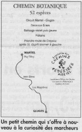 Riche de ce constat, l'association des chemins pédestres de Martel et ses bénévoles ont ouvert un chemin botanique de cinq kilomètres entre Martel et Gluges. Ce sentier a nécessité une année de préparation, 1000 heures de travail de la part des bénévoles et l'intervention de deux botanistes, Messieurs Canou et Delpy.
